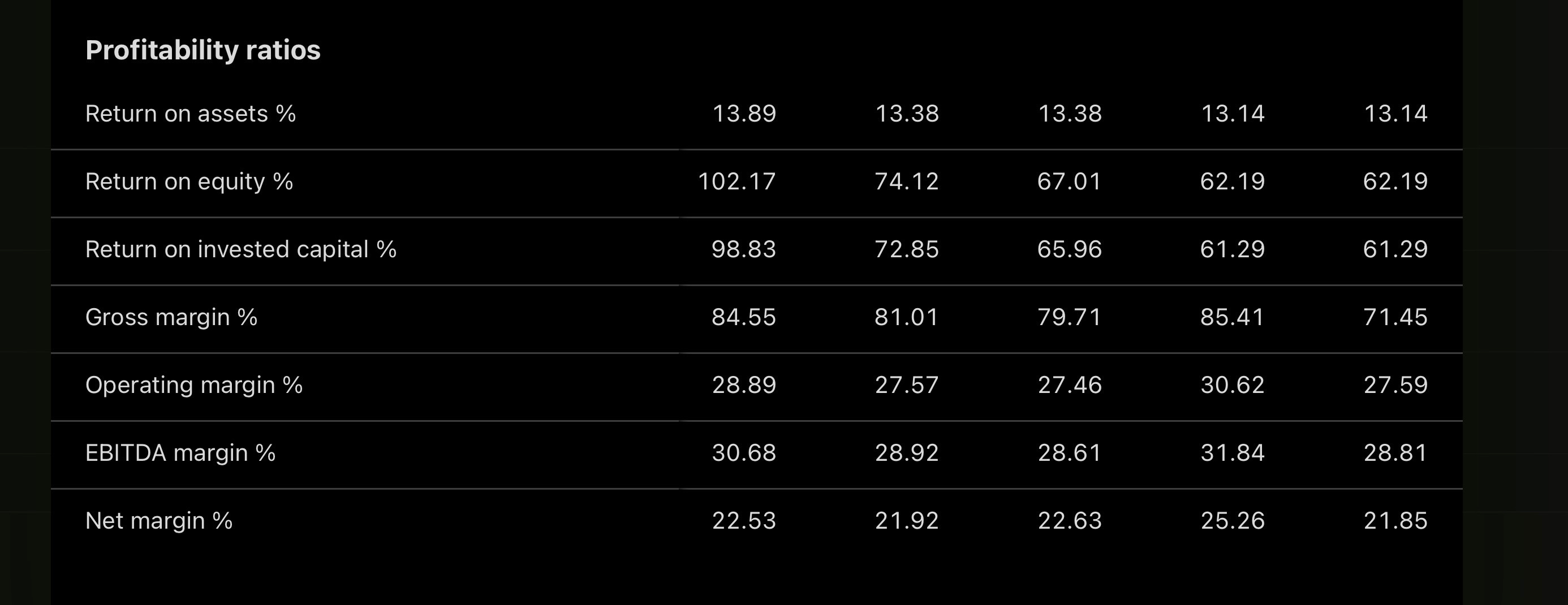 Superior Return on Capital (>20%) (Score: 5/5): Bytes is a real winner when it comes to profitability! Their return on capital (ROIC) is consistently > 60%, which is a score of 5/5. Check out the Trading View table below for some impressive ROE and ROIC figures. They’ve been raking in profits for the past five years, with ROE ranging from 62% to 102%! And their strong net cash position just adds to their impressive track record. They are clearly a formidable and long-term competitor.