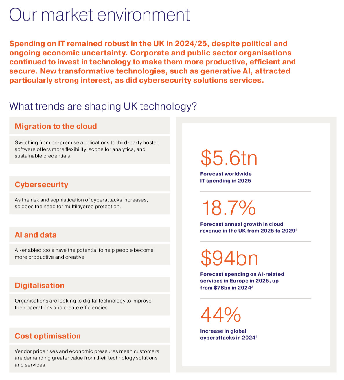 The underlying structural tailwinds persist: accelerated digital transformation, surging cloud adoption (85% of UK businesses now utilise cloud computing, with public sector spending increasing by 23% annually), escalating cybersecurity threats (UK spending has risen by 42% between 2021 and 2023), and the transformative integration of artificial intelligence (68% of UK enterprises are implementing or planning AI solutions by 2024). Bytes is proactively capitalising on these factors, selling over 130,000 Microsoft Copilot licenses and establishing specialised AI teams.