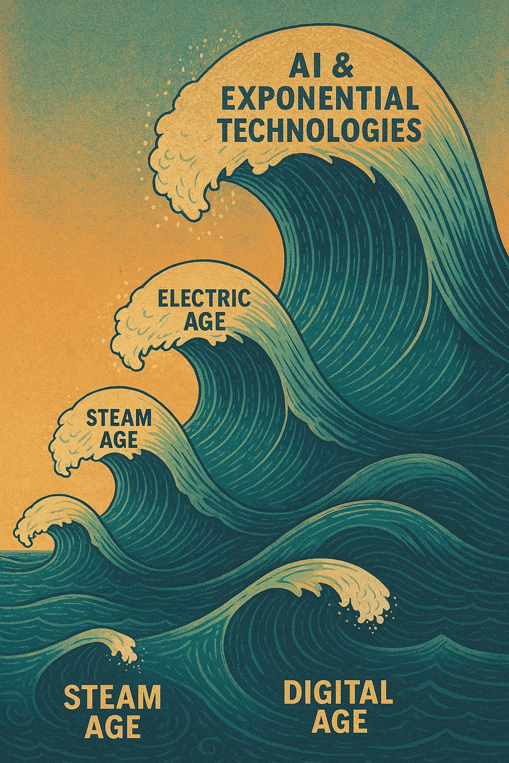 I root my framework in Kondratieff’s long economic cycles — 45- to 60-year waves driven by foundational technologies. The present wave is not powered by coal or steam, but by code: artificial intelligence, digital networks, and biotechnology. The AlphaMonk thesis recognises that what once evolved gradually now accelerates, compounding gains and risks alike.